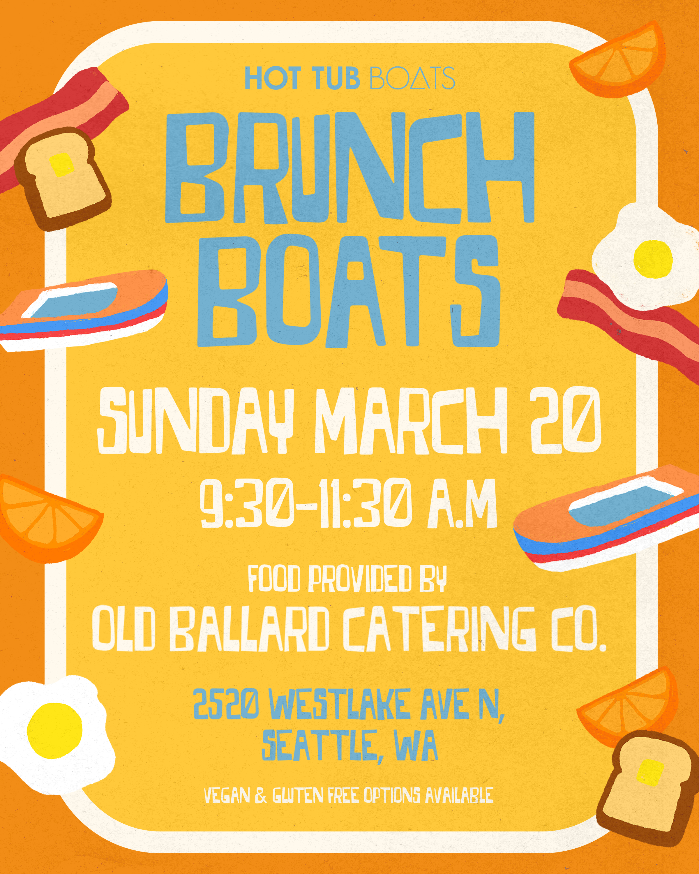 Head out onto Lake Union with a catered meal, half a dozen donuts, and your favorite wake me up beverage on deck! We also provide a free epsom soak and towel service - so all you need to bring is your appetite (and a change of clothes!)